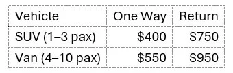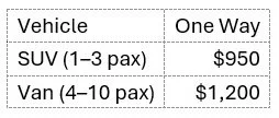 Perfect for families and groups who prefer the assurance of a driver remaining nearby on the mountain, in case plans or weather shift. This package allows you to ski at your own pace, return when you’re ready, and adjust plans as needed. Includes one return trip per day.